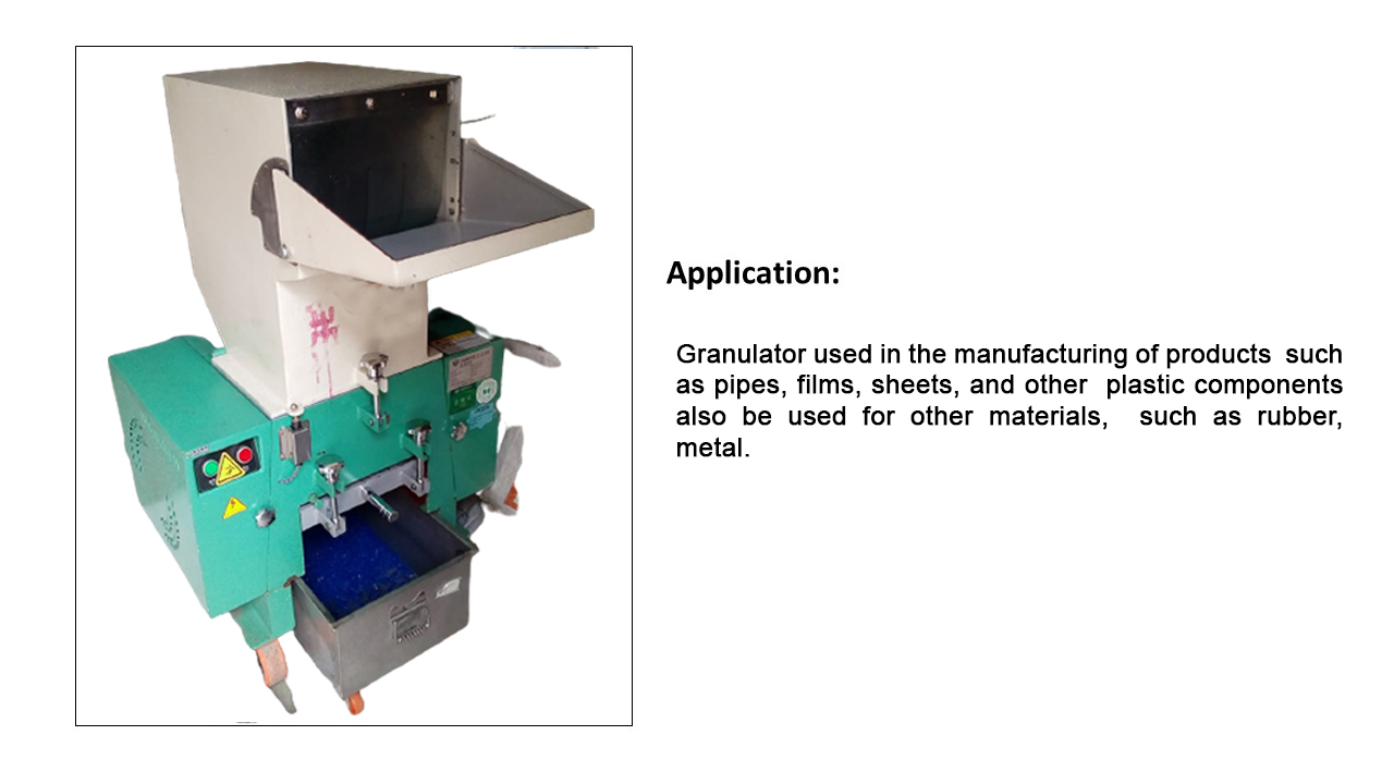 Gallery Contact UsGranulator is a machine that is used to reduce the size of plastic waste materials so that they can be more easily recycled or disposed of. These machines typically use a series of cutting blades to shred the plastic materials into smaller pieces, which can then be further processed or compacted for disposal or recycling. Granulator are commonly used in manufacturing and recycling facilities, as well as in waste management operations.